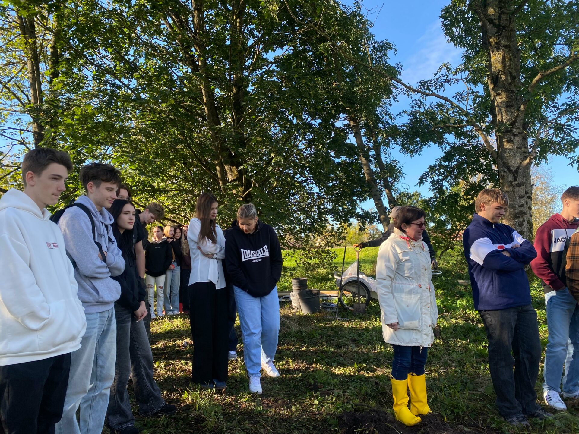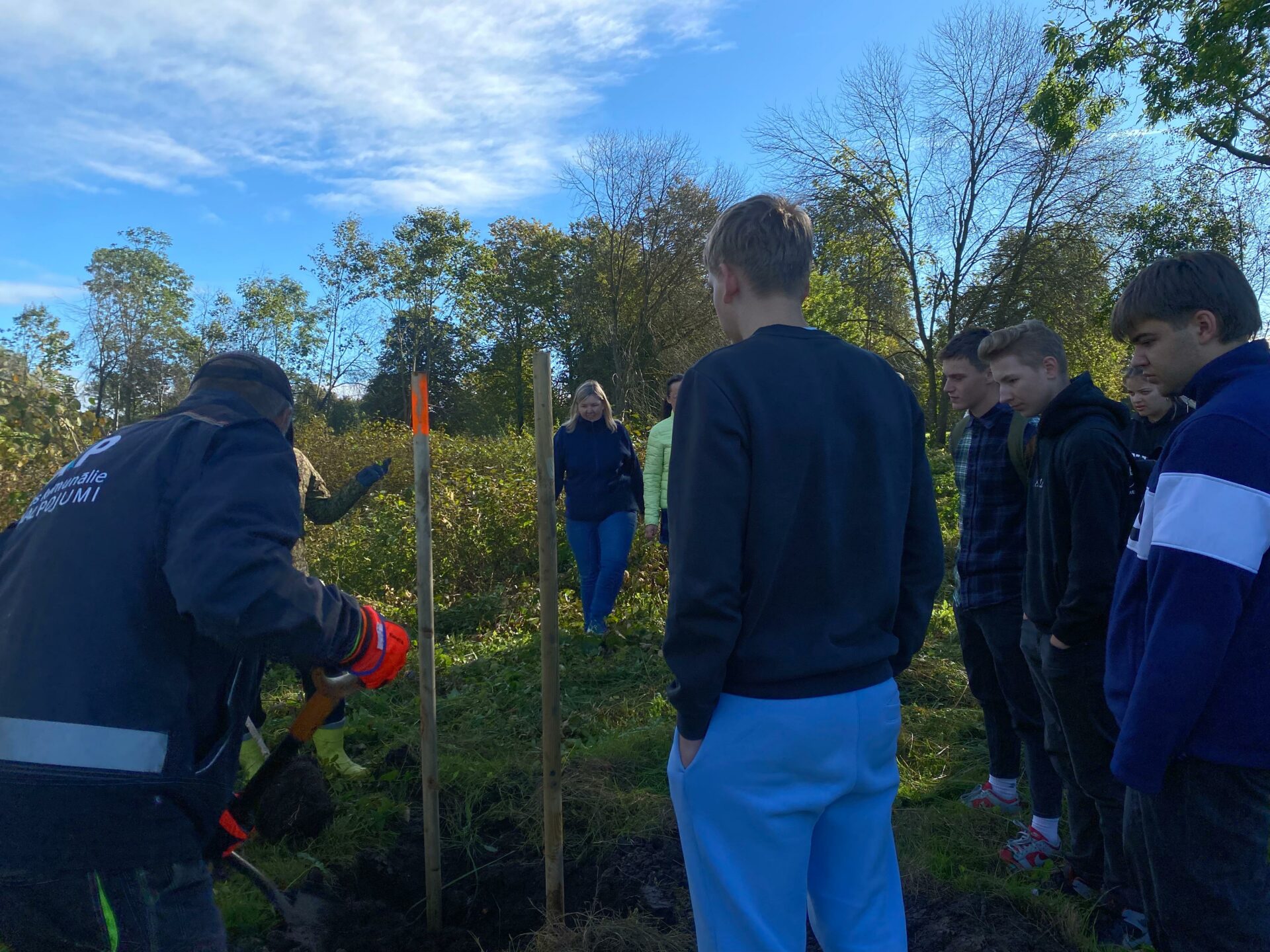 25. septembrī, Auces vidusskolas 10. klase piedalījās Latvijas Pašvaldību savienības projekta “Meža dienas 2025” ietvaros iegādāto koku un krūmu stādīšanā.