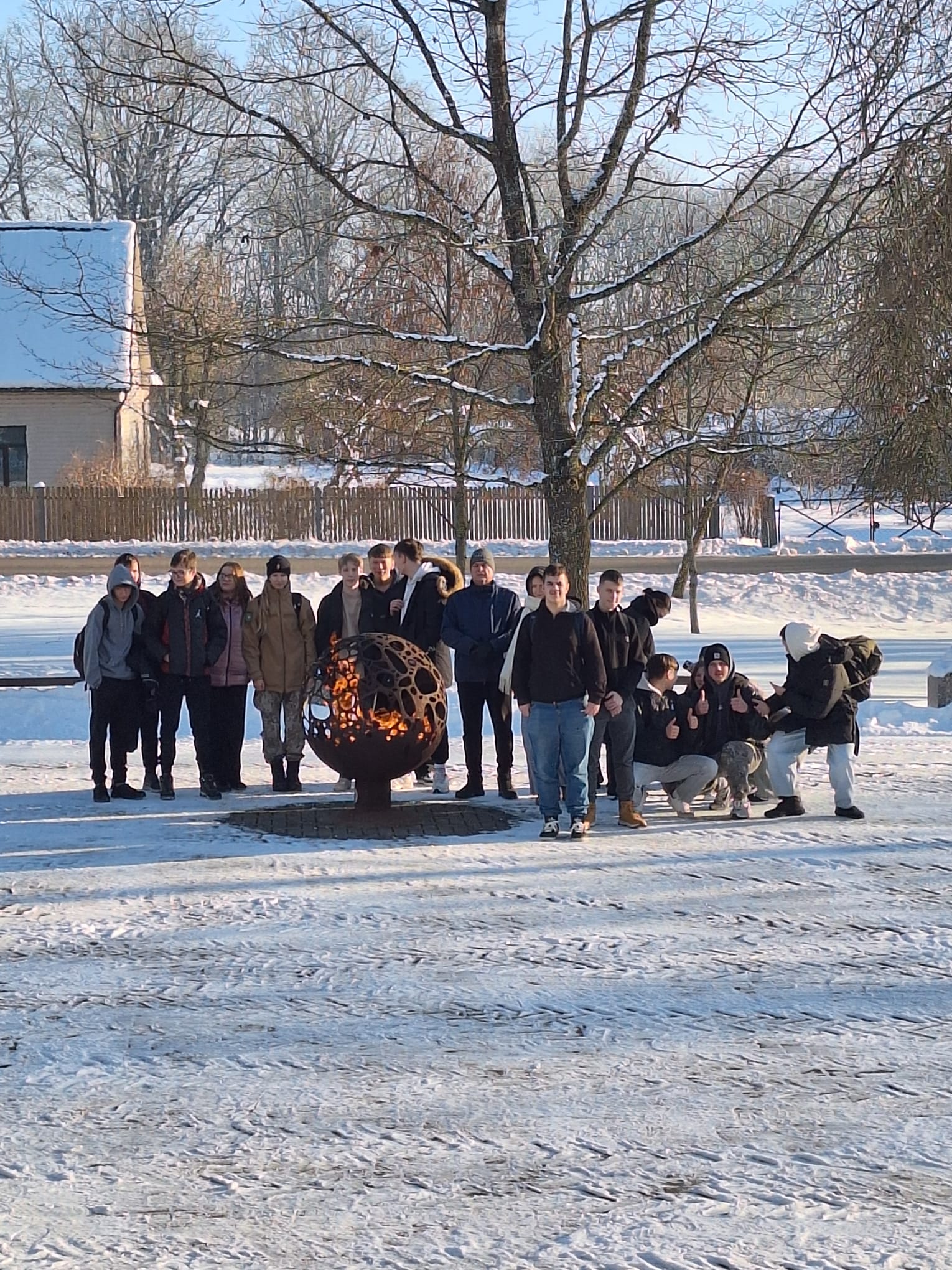 Notikumu piemiņai skolas pagalmā dega simbolisks ugunskurs.