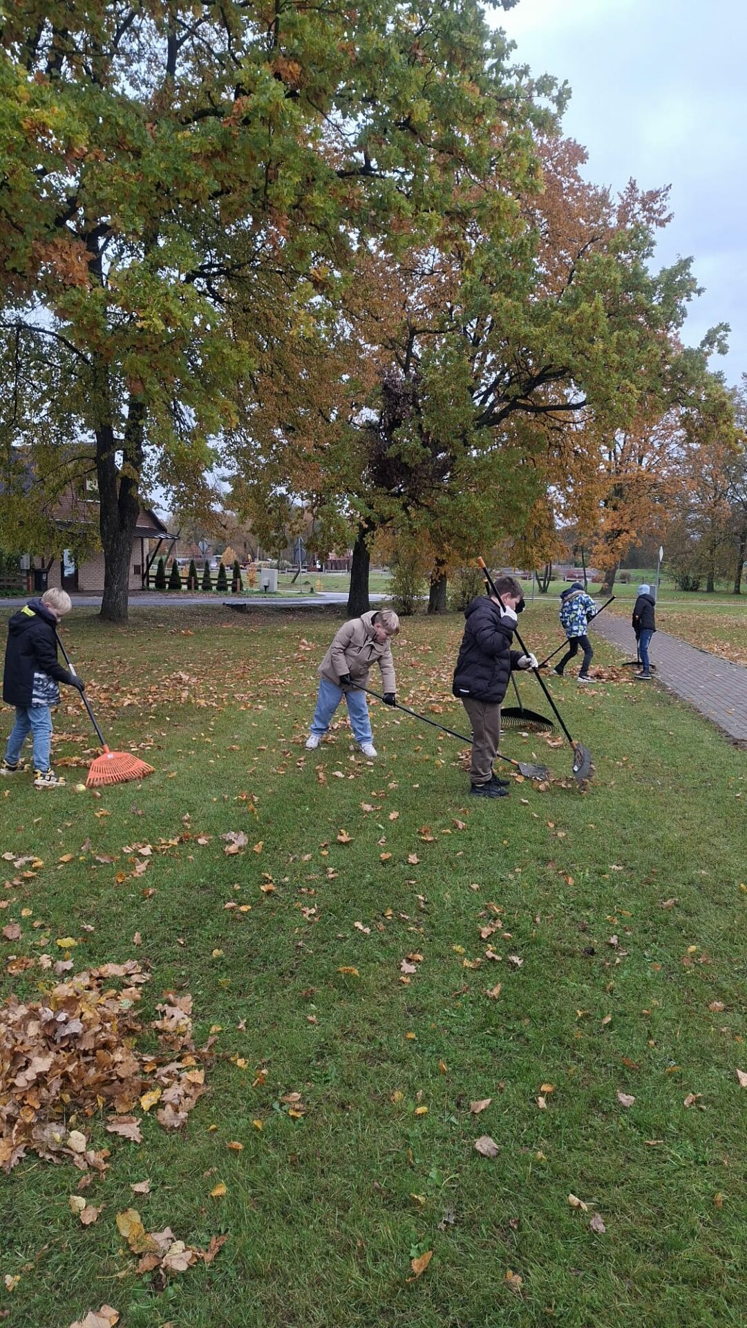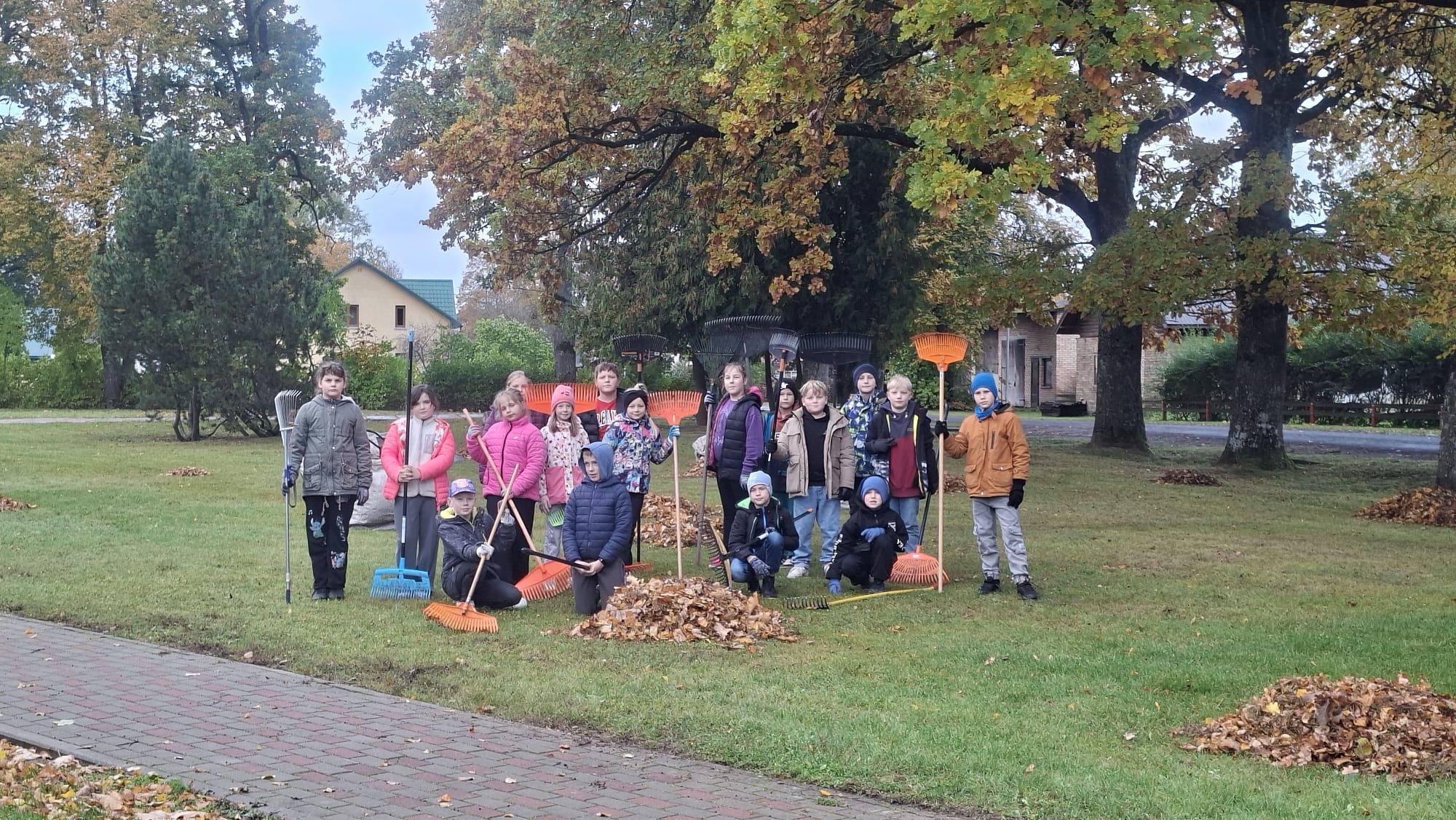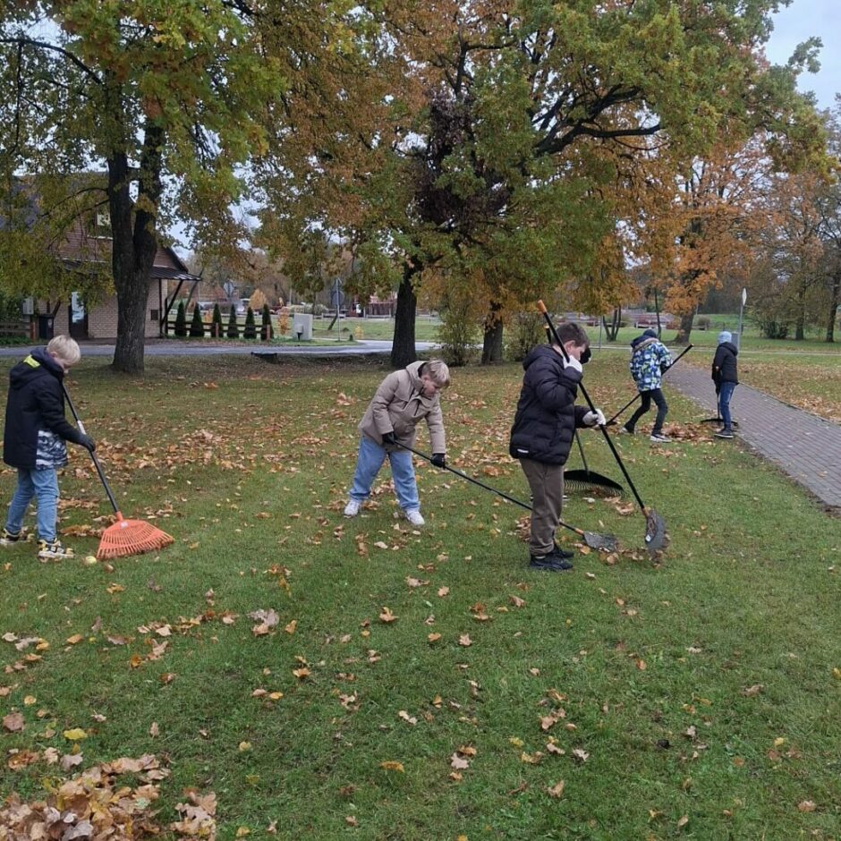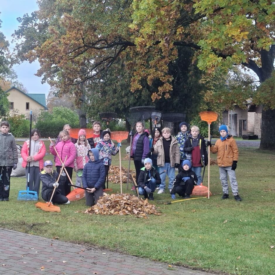 3.a klases labais darbs- palīdz skolas sētniekam grābt lapas