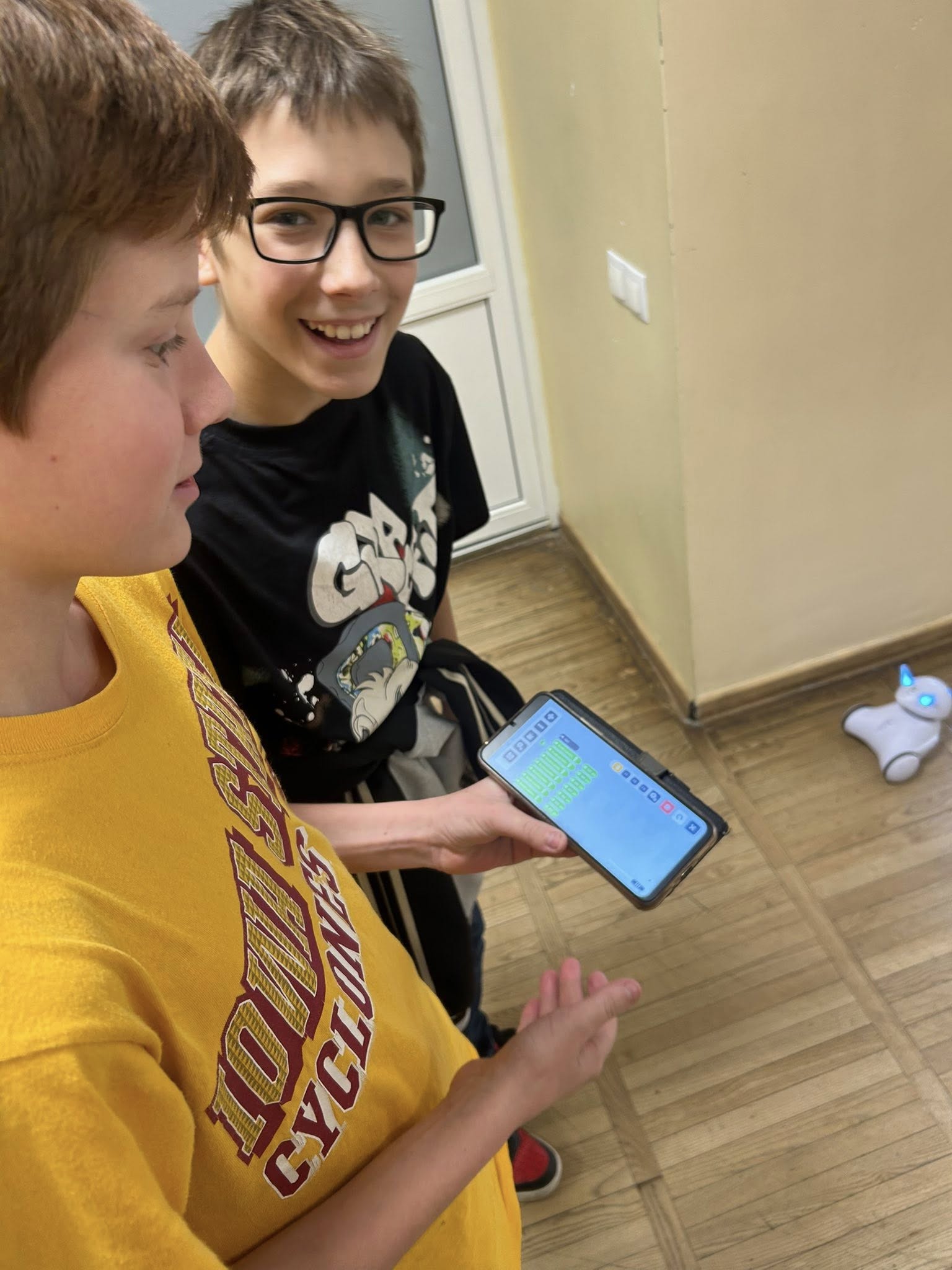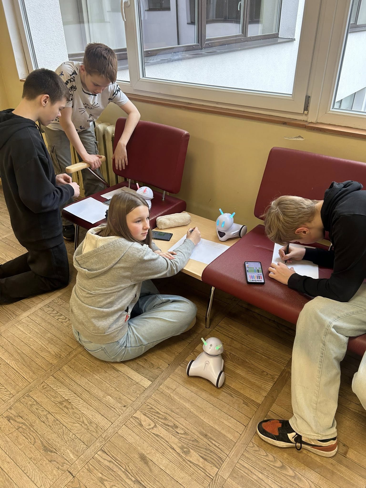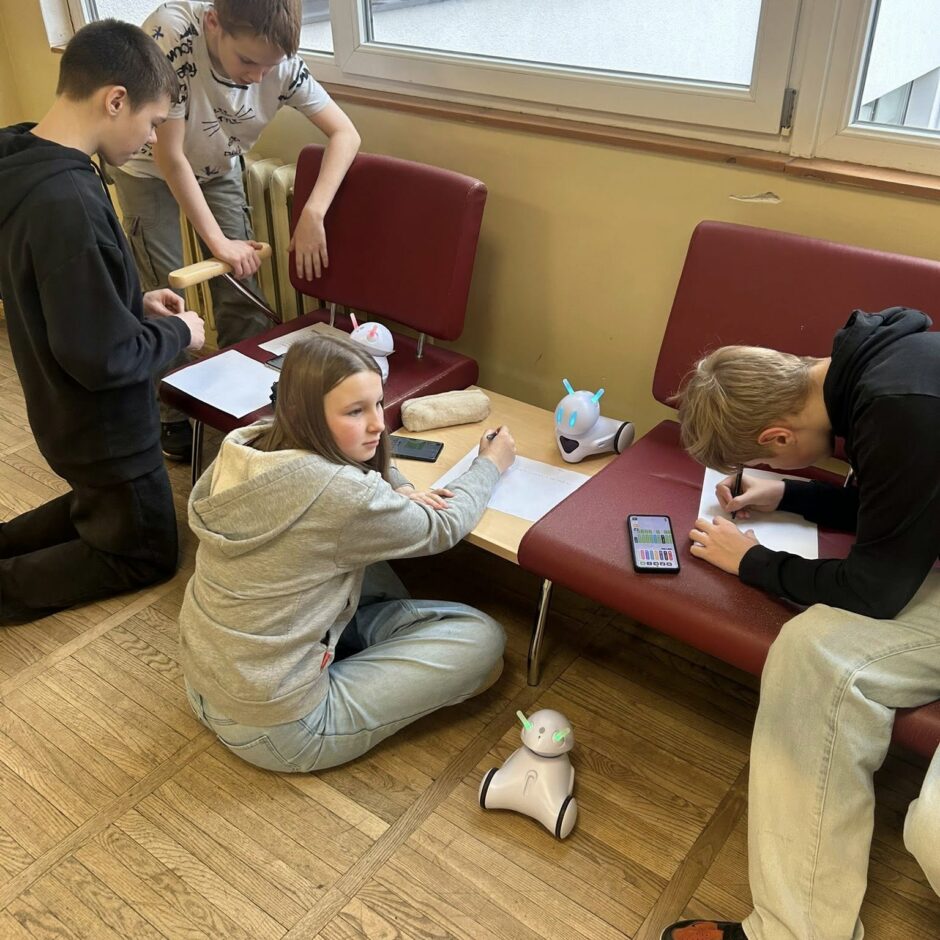 Arī 6.B klase cītīgi mācās un apgūst Photon robotu darbības un plāno kā, izmantojot robotus, varētu izveidot vienkāršas spēles datorikas stundās.