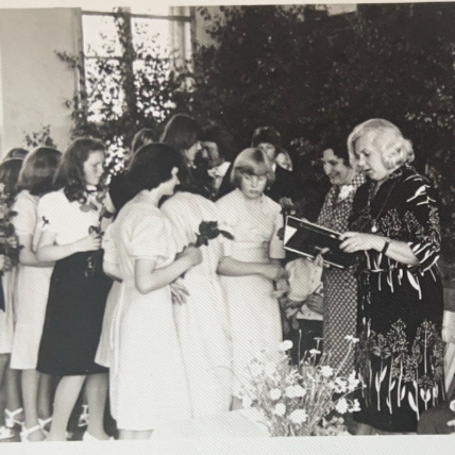 Direktore Maija Upmane pamatskolas izlaidumā 1979. gadā
