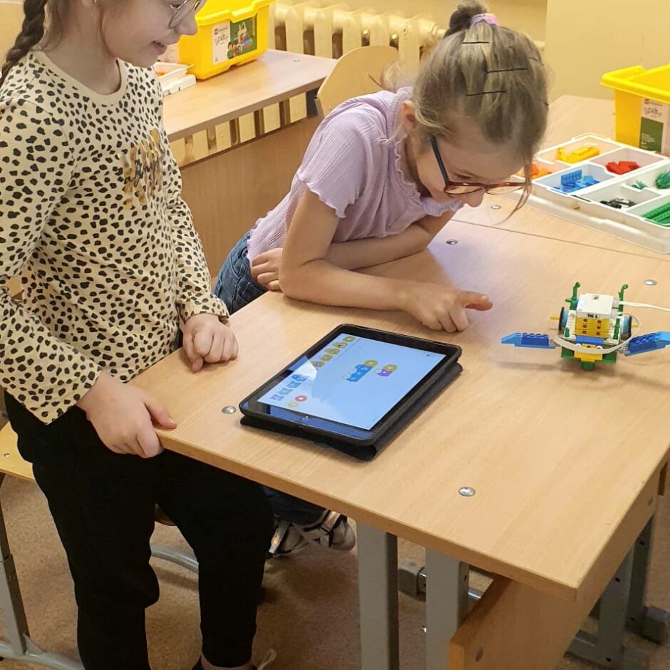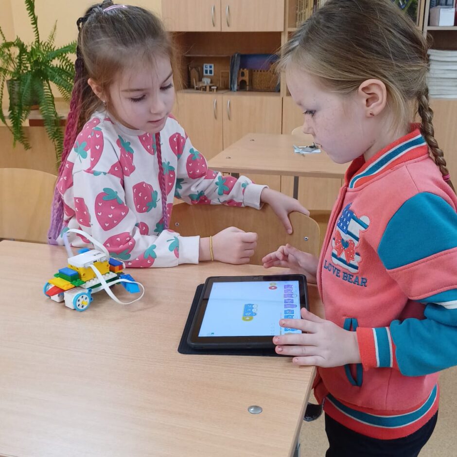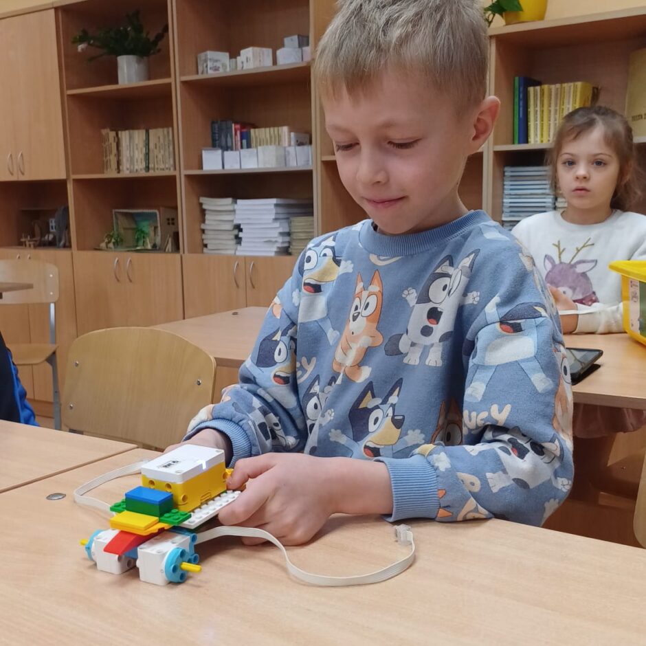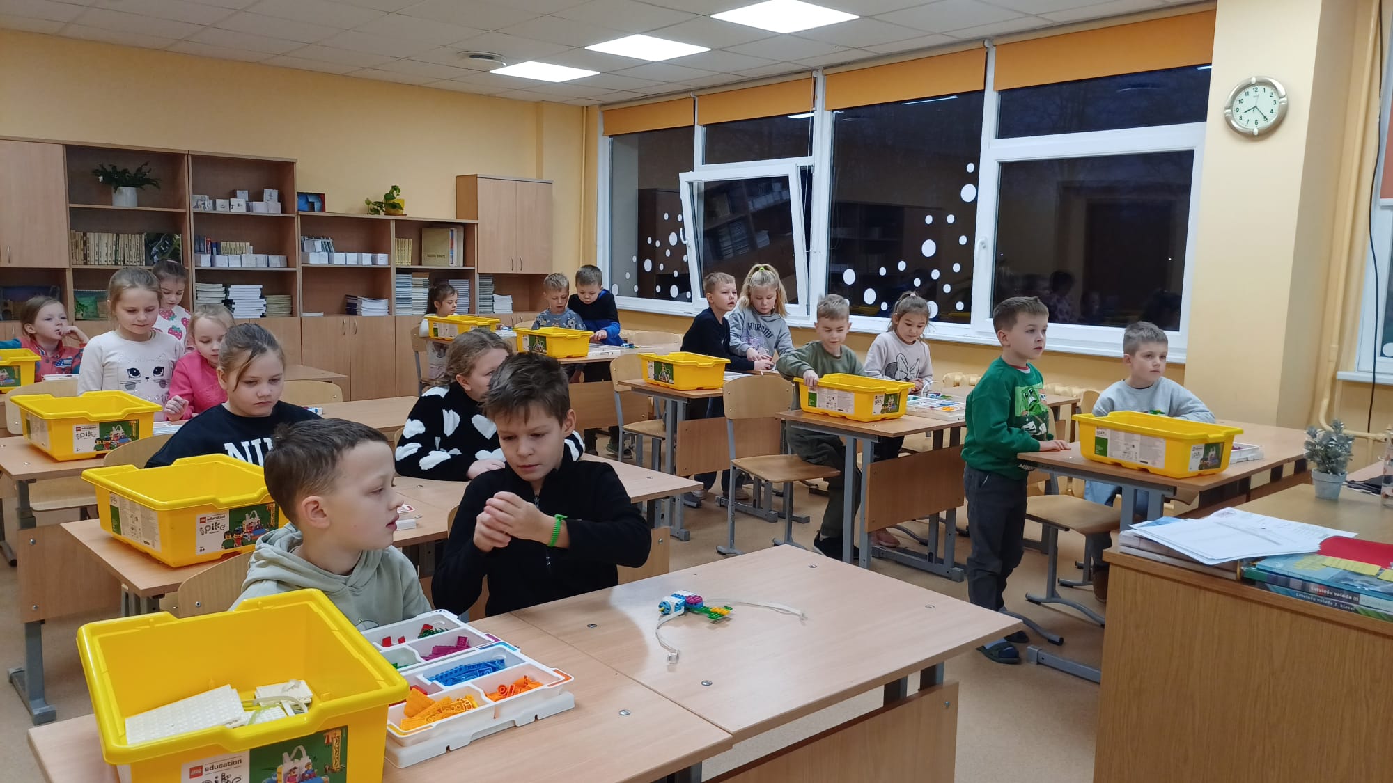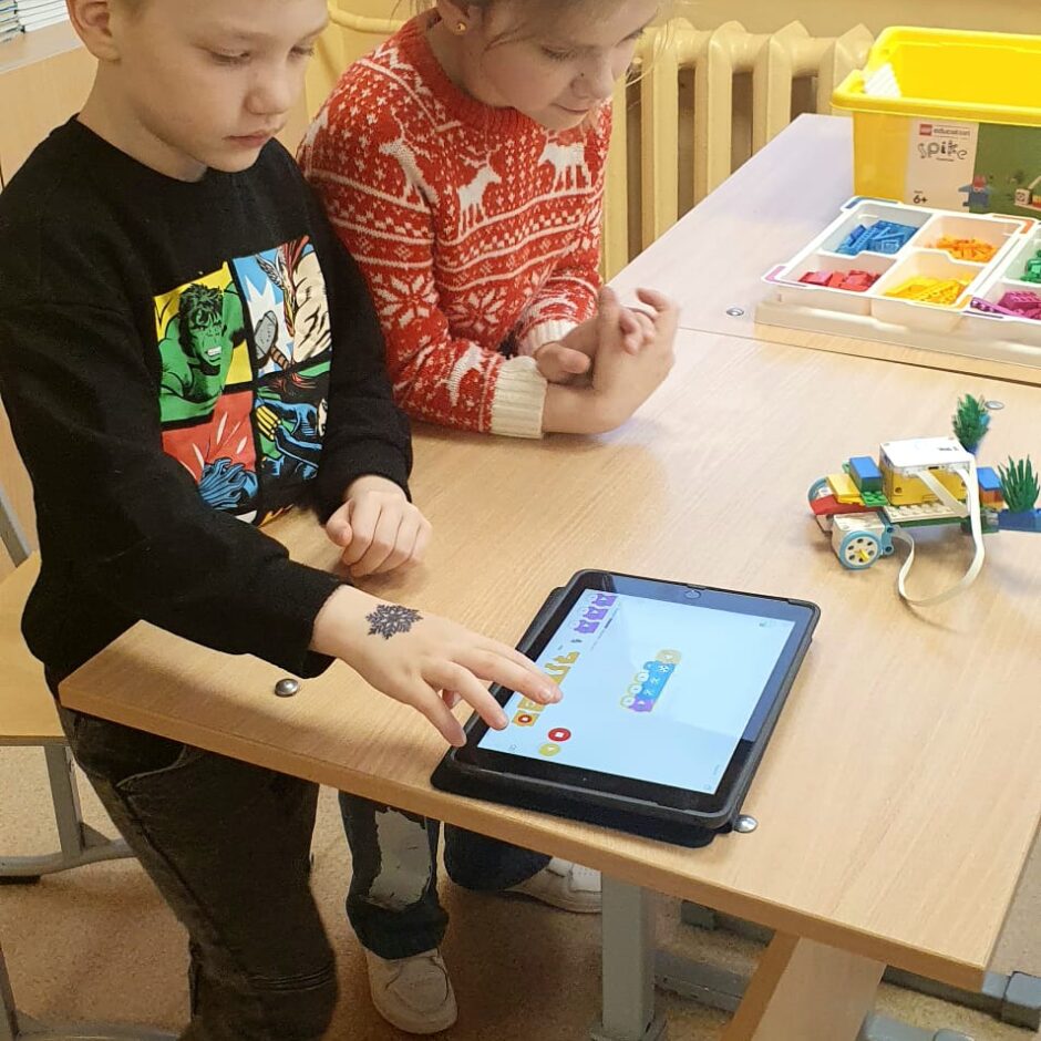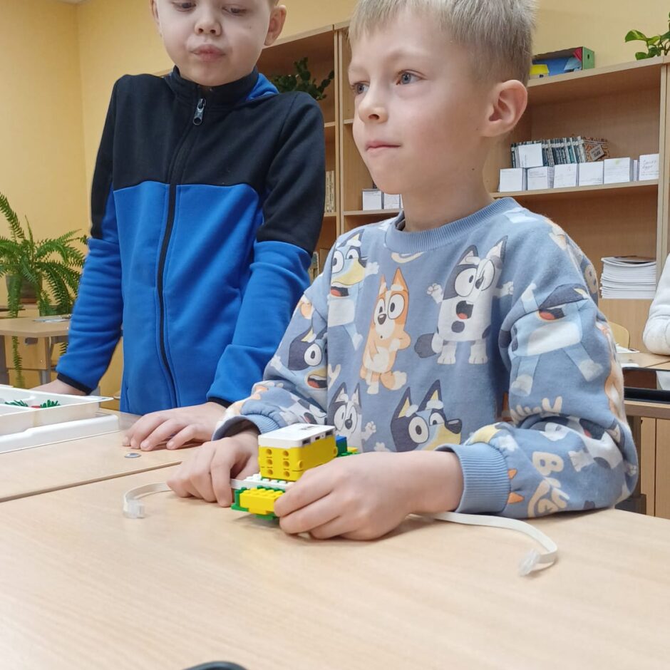 Stunda sākās ar vizuālu prezentāciju, attēliem un video par tēmu “Programmvadāmas ierīces-roboti”. Praktiskajā daļā, norises vadītāju Marijas un Arīnas vadībā skolēni pēc shēmas konstruēja mehānisku, programmējamu robotu Bruņurupuci. Katrā konstruēšanas solī skolēni identificēja, atrada un pievienoja nepieciešamo konstrukcijas detaļu. Noslēgumā, lai pārbaudītu, ka uzbūvētā konstrukcija ir pareiza (nav pieļautas kļūdas būvēšanas laikā), tā tika programmēta un iekustināta. Skolēniem bija liels prieks par iespēju no lego klucīšiem radīt pašu vadāmu robotiņu.