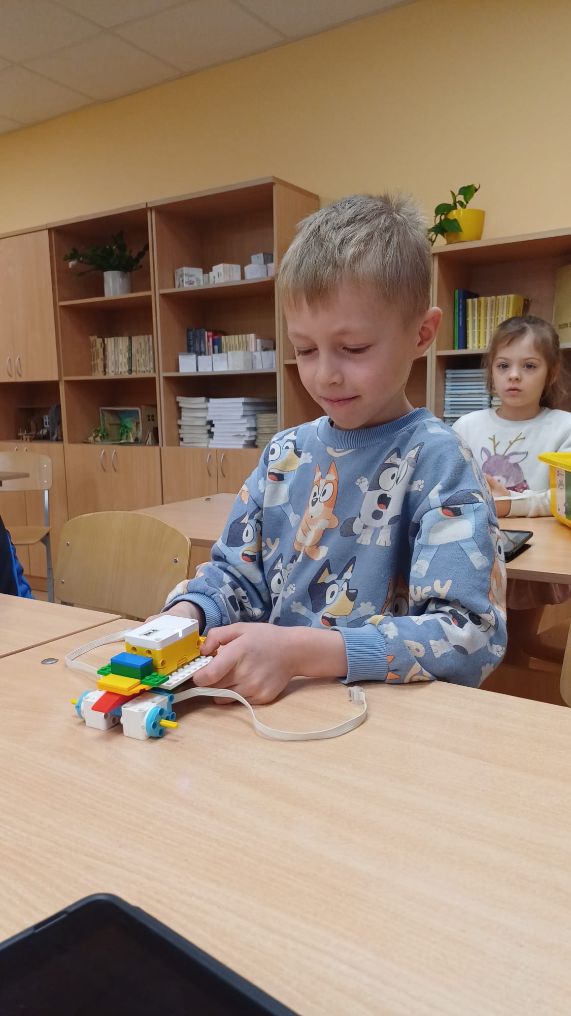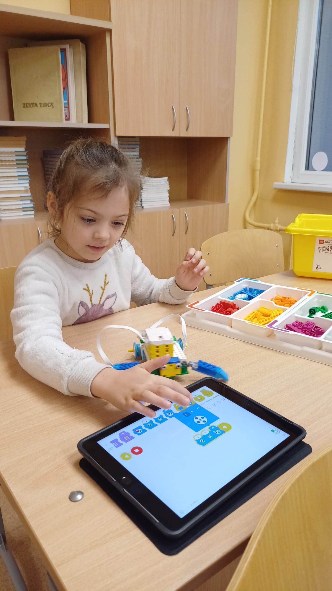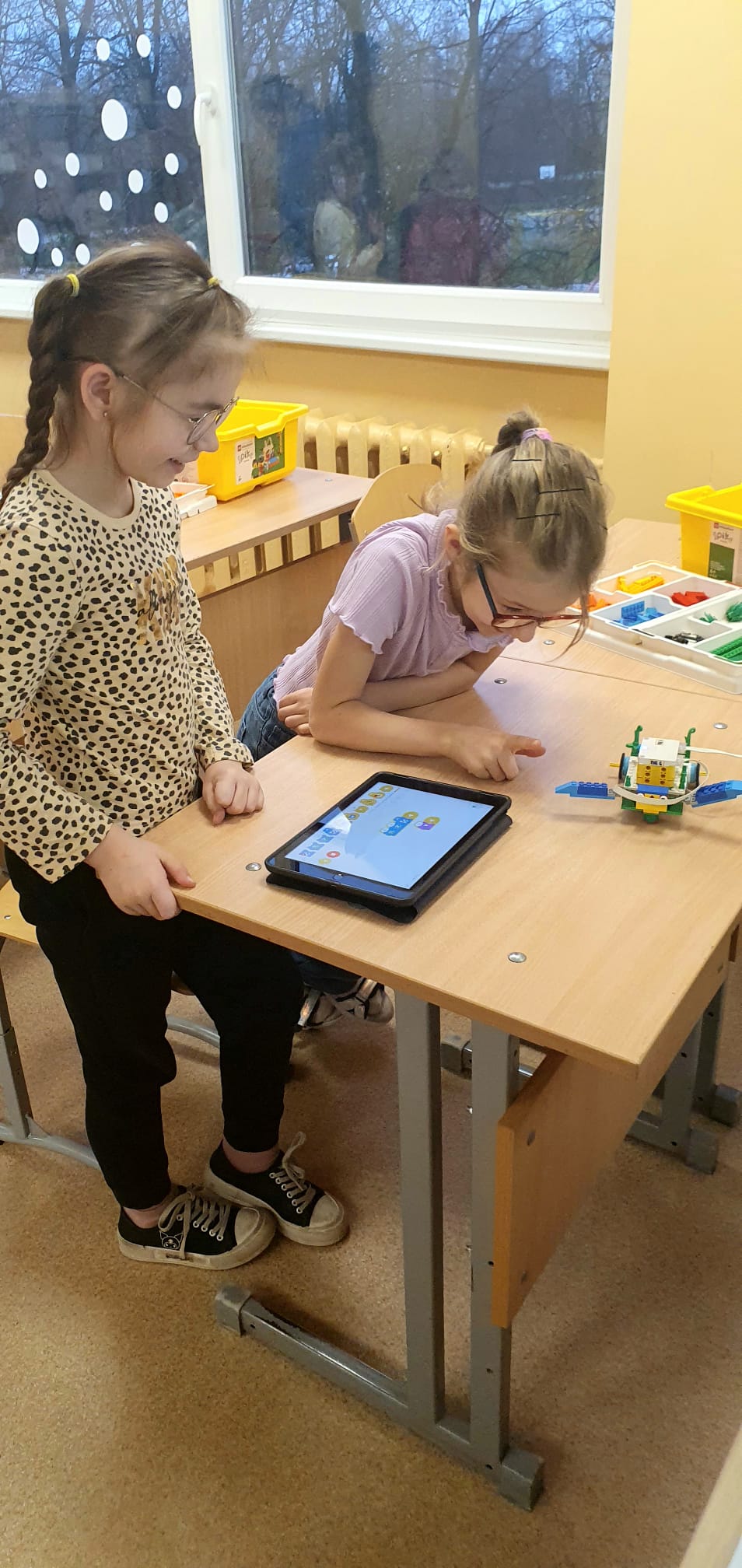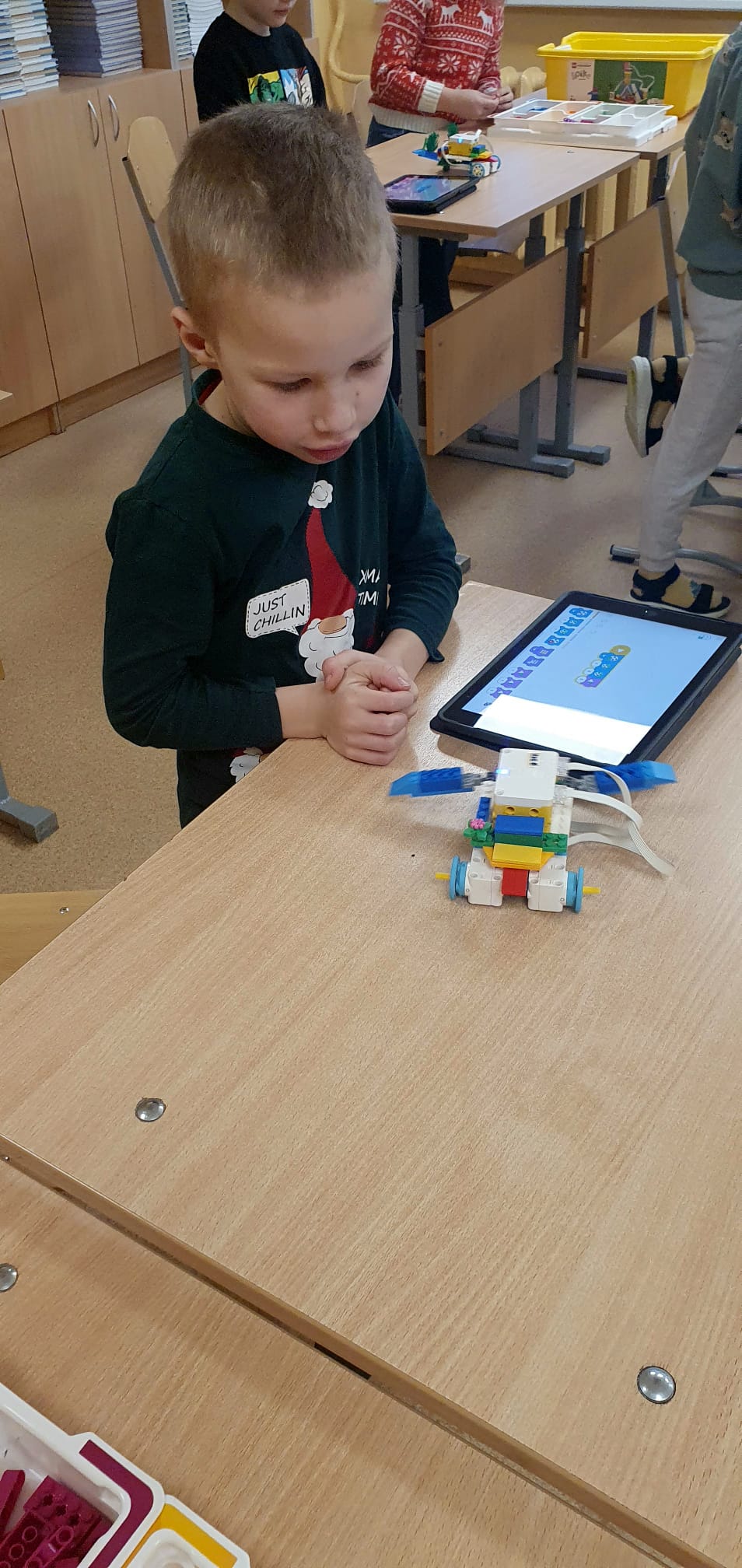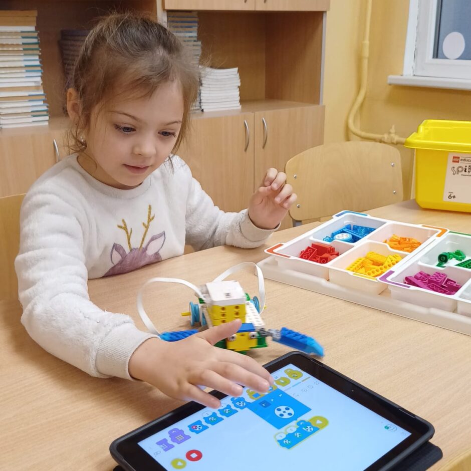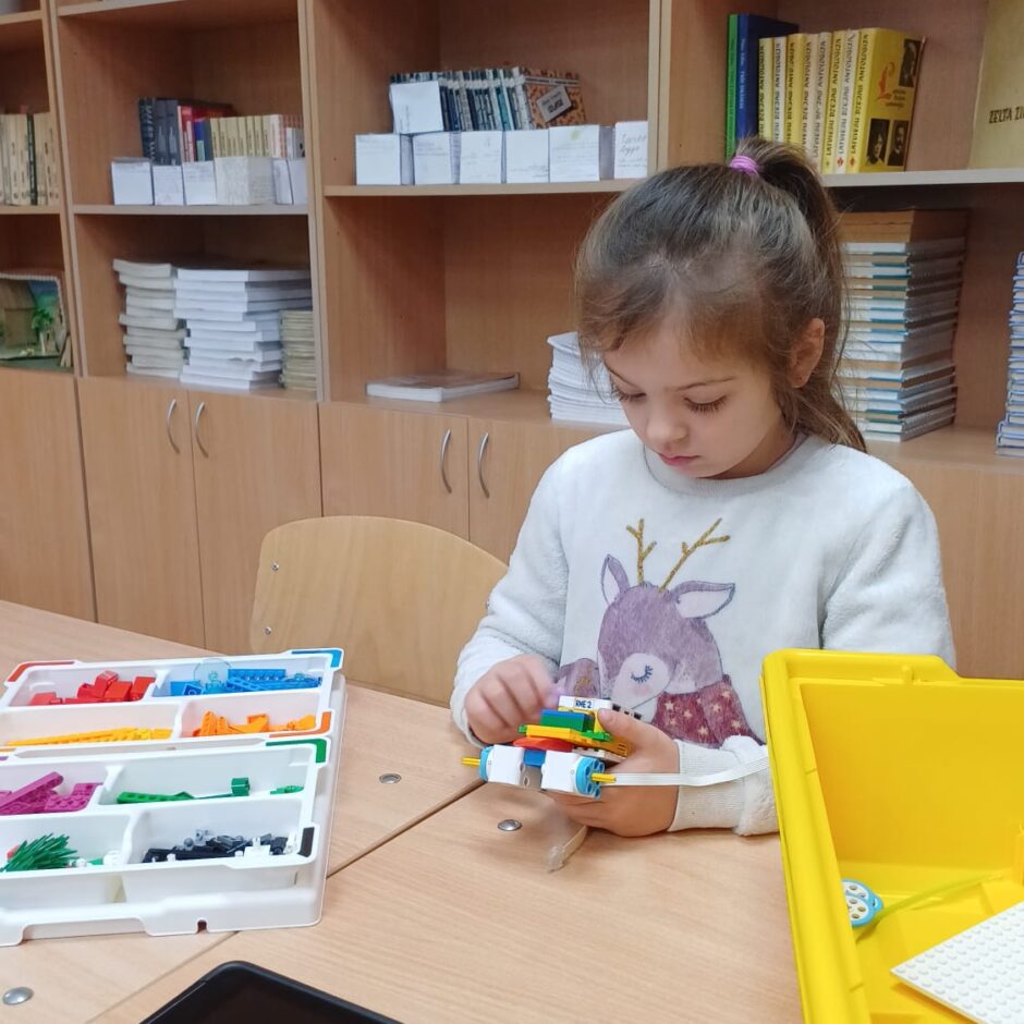 Stunda sākās ar vizuālu prezentāciju, attēliem un video par tēmu “Programmvadāmas ierīces-roboti”. Praktiskajā daļā, norises vadītāju Marijas un Arīnas vadībā skolēni pēc shēmas konstruēja mehānisku, programmējamu robotu Bruņurupuci. Katrā konstruēšanas solī skolēni identificēja, atrada un pievienoja nepieciešamo konstrukcijas detaļu. Noslēgumā, lai pārbaudītu, ka uzbūvētā konstrukcija ir pareiza (nav pieļautas kļūdas būvēšanas laikā), tā tika programmēta un iekustināta. Skolēniem bija liels prieks par iespēju no lego klucīšiem radīt pašu vadāmu robotiņu.