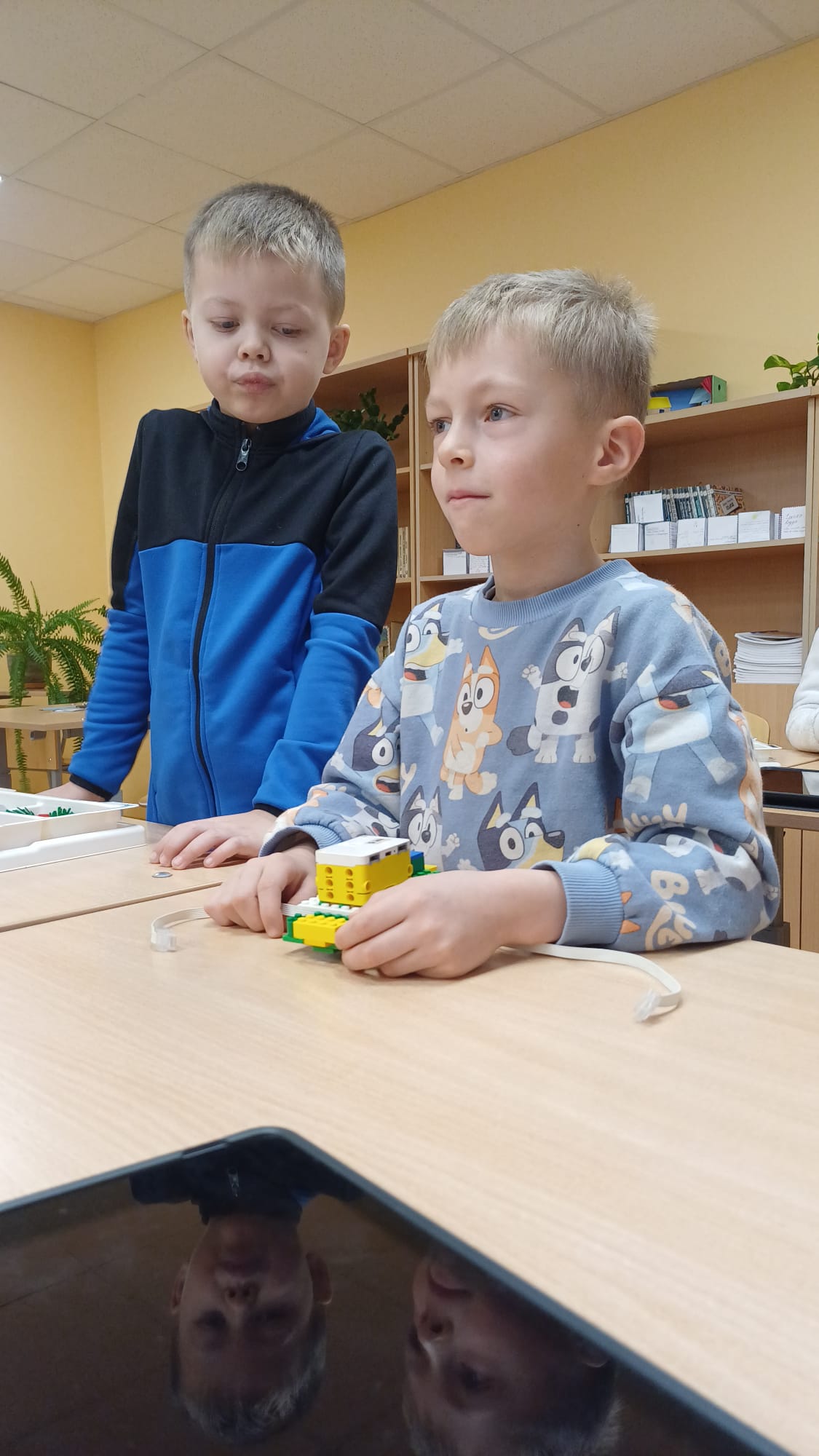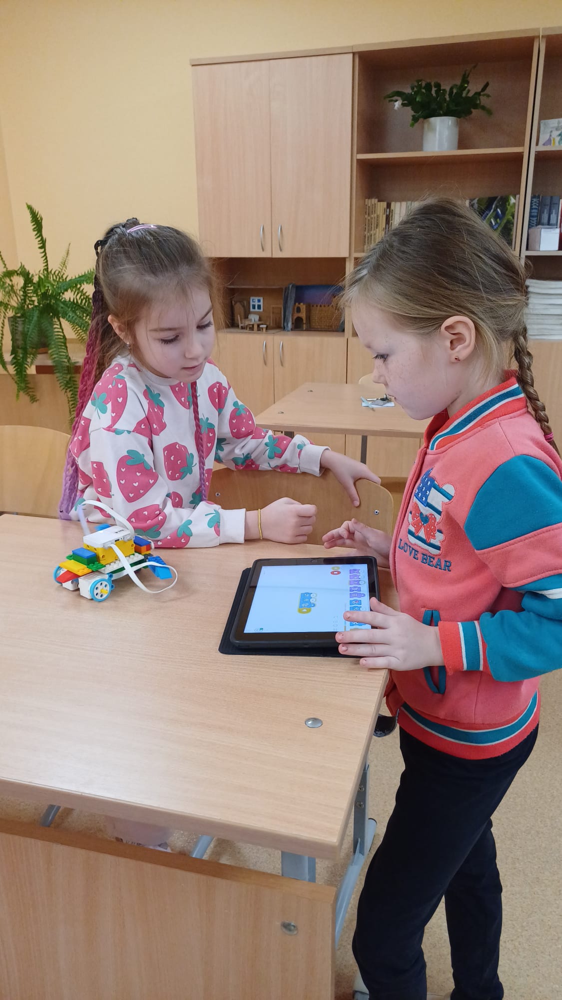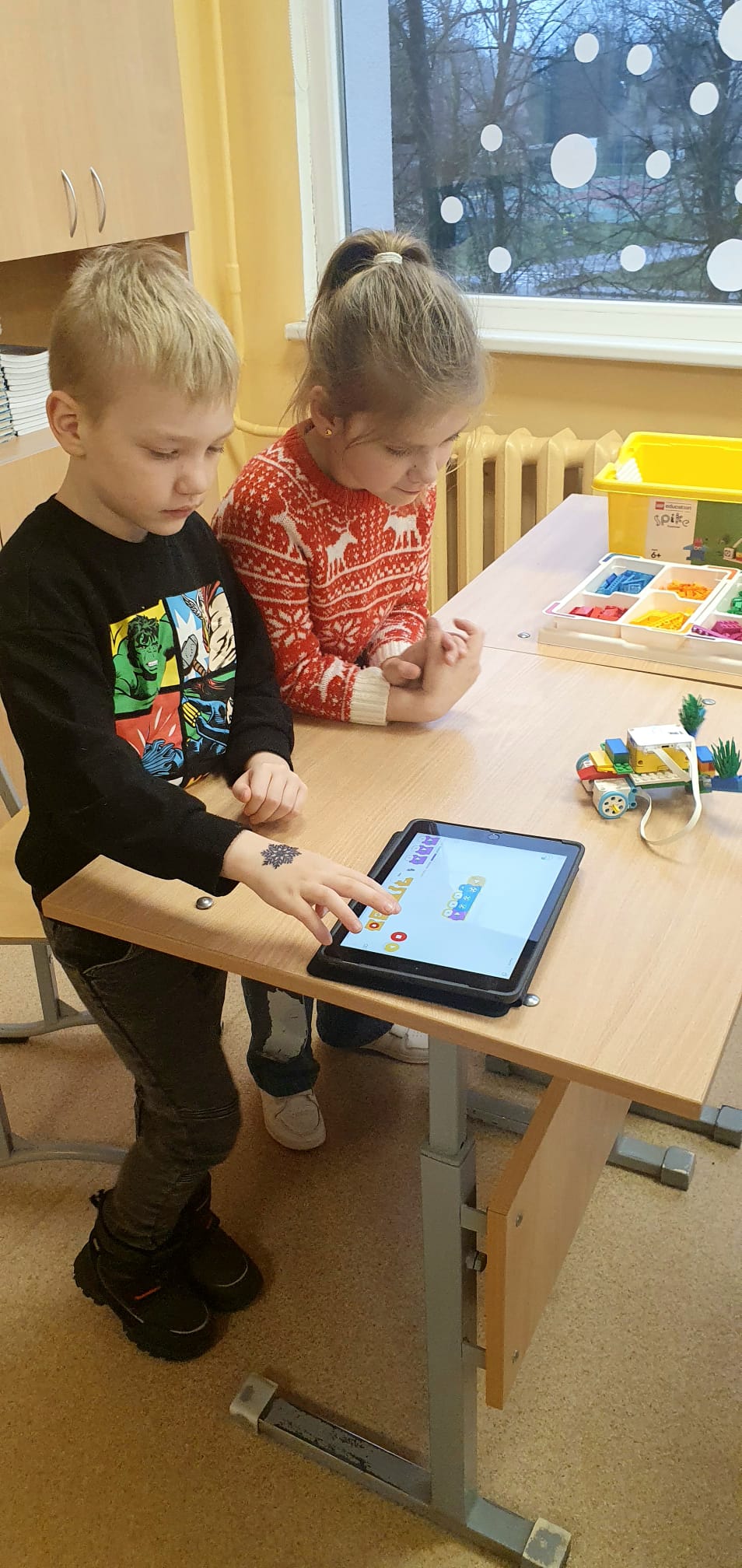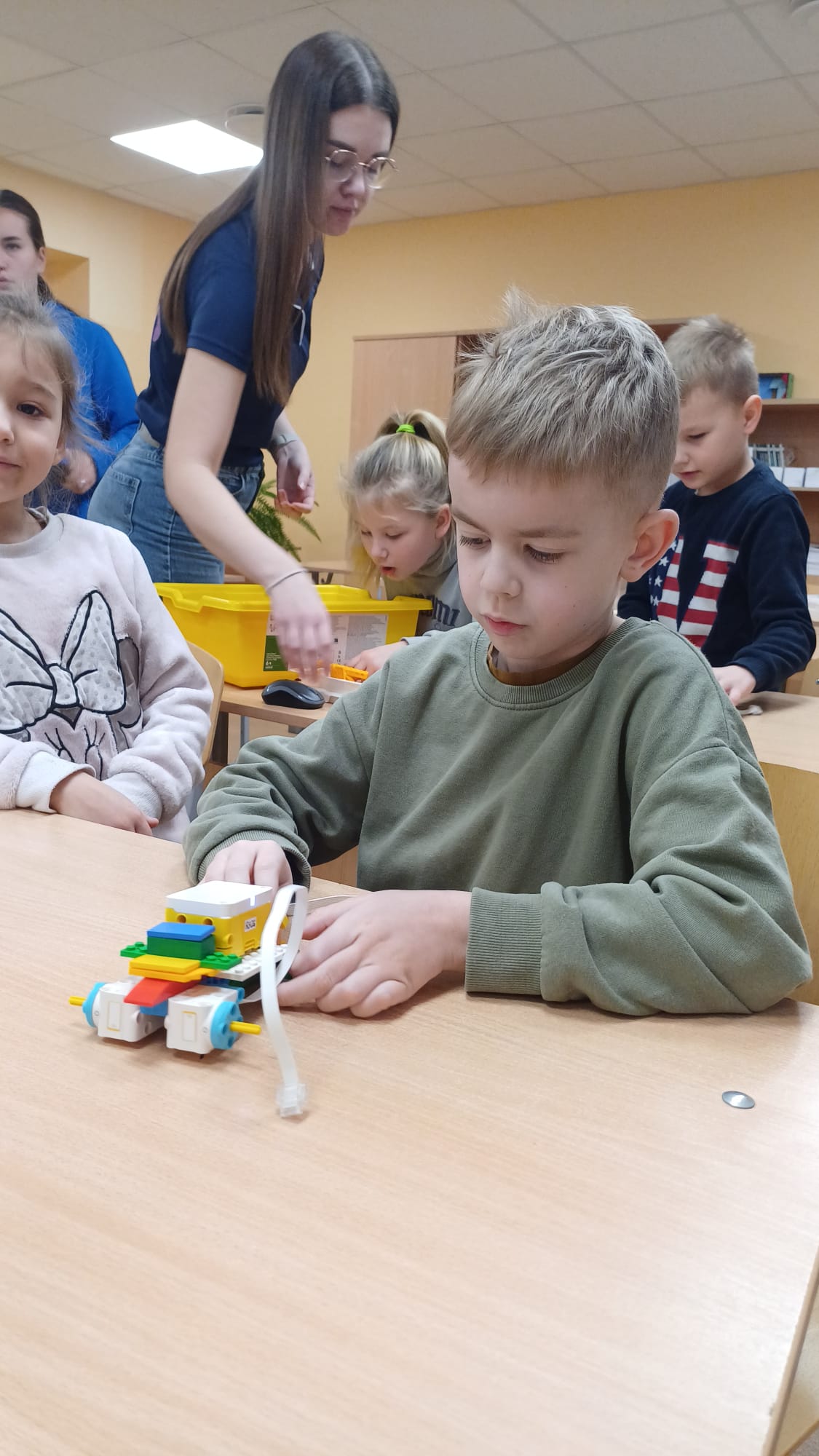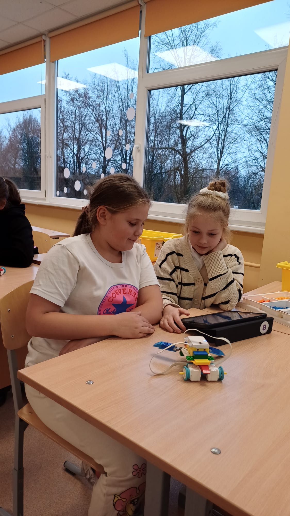 Stunda sākās ar vizuālu prezentāciju, attēliem un video par tēmu “Programmvadāmas ierīces-roboti”. Praktiskajā daļā, norises vadītāju Marijas un Arīnas vadībā skolēni pēc shēmas konstruēja mehānisku, programmējamu robotu Bruņurupuci. Katrā konstruēšanas solī skolēni identificēja, atrada un pievienoja nepieciešamo konstrukcijas detaļu. Noslēgumā, lai pārbaudītu, ka uzbūvētā konstrukcija ir pareiza (nav pieļautas kļūdas būvēšanas laikā), tā tika programmēta un iekustināta. Skolēniem bija liels prieks par iespēju no lego klucīšiem radīt pašu vadāmu robotiņu.