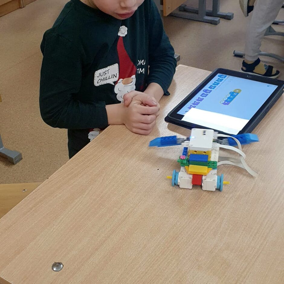 Projekta “STEM un pilsoniskās līdzdalības norises plašākai izglītības pieredzei un karjeras izvēlei” ietvaros 8. decembrī skolā viesojās robotikas skolas ROBO HUB pārstāves, lai 1., 2. un 3. klašu skolēniem mācītu konstruēšanas un programmēšanas pamatus.