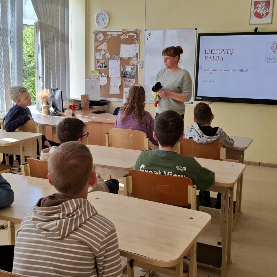 9. un 10. maijā projekta LingoKey dalībniekiem 5. a un 5. b klašu skolēniem bija iespēja demonstrēt savas lietuviešu valodas zināšanas nodarbībās, kuras vadīja Kauņas universitātes pasniedzēja D. Puškoriute – Riduliene.