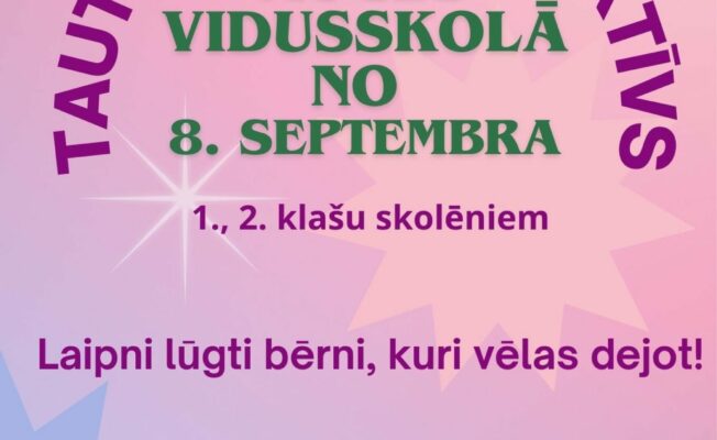 Tautiskās dejas 1. – 2. klašu skolēniem!