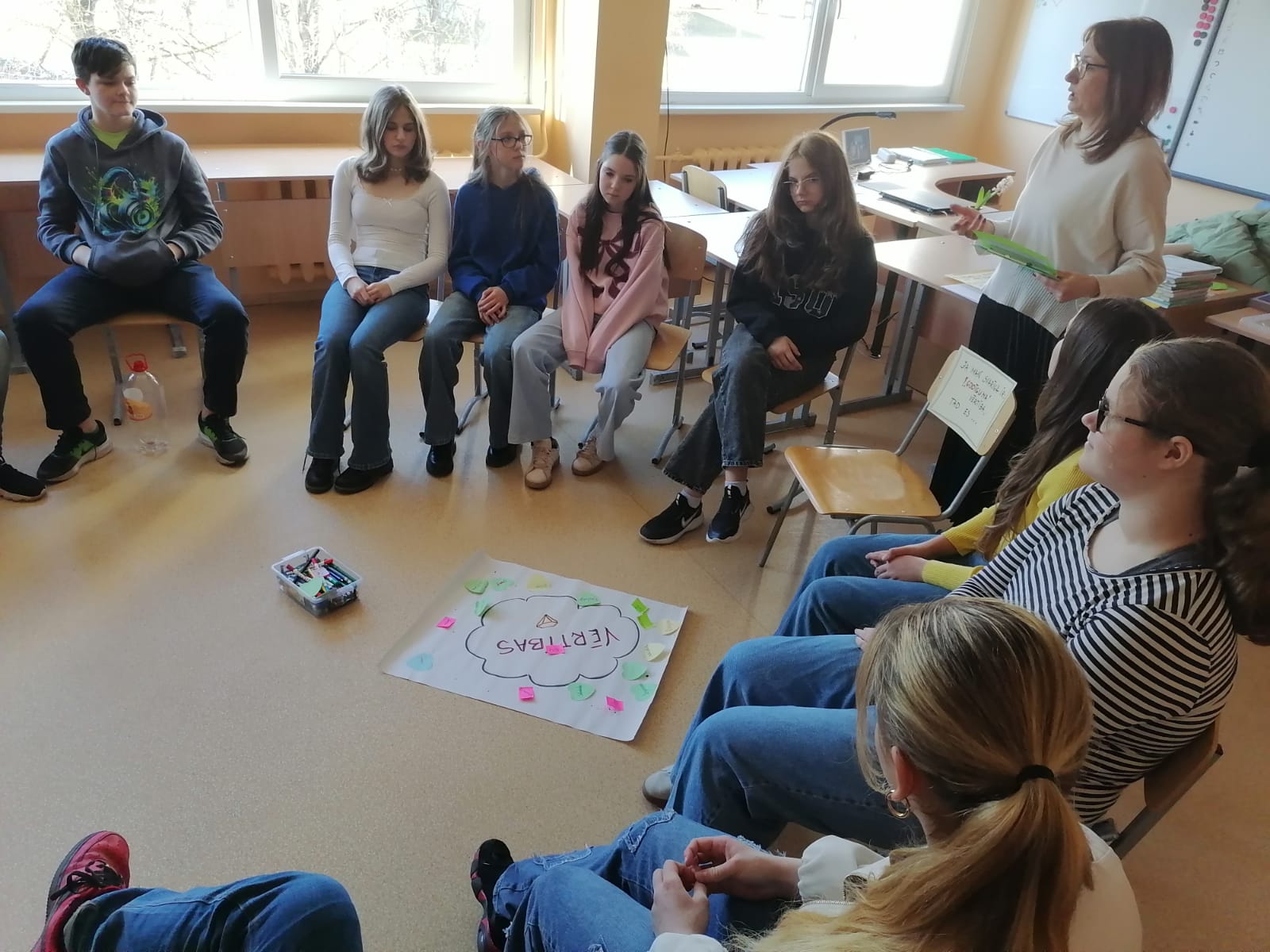 20.martā 7. klašu skolēni nodarbībā “Vērtības kā dzīves pamatakmens”, Ivetas Žugres (Ogres jauniešu Iniciatīvas biedrība “Talantu kalve”) rosināti, veidoja izpratni par vērtību nozīmi dzīvē, mācībās un savstarpējā saskarsmē, par to ietekmi uz katra izvēli, lēmumiem un rīcību. Skolēni izveidoja savu vērtību skalu. Darbojoties grupās apsprieda, kā viņu vērtības ietekmētu izvēli konkrētā situācijā. Dalībnieki izteica viedokli un iesaistījās sarunā par savu attieksmi un līdzdalības iespējām.