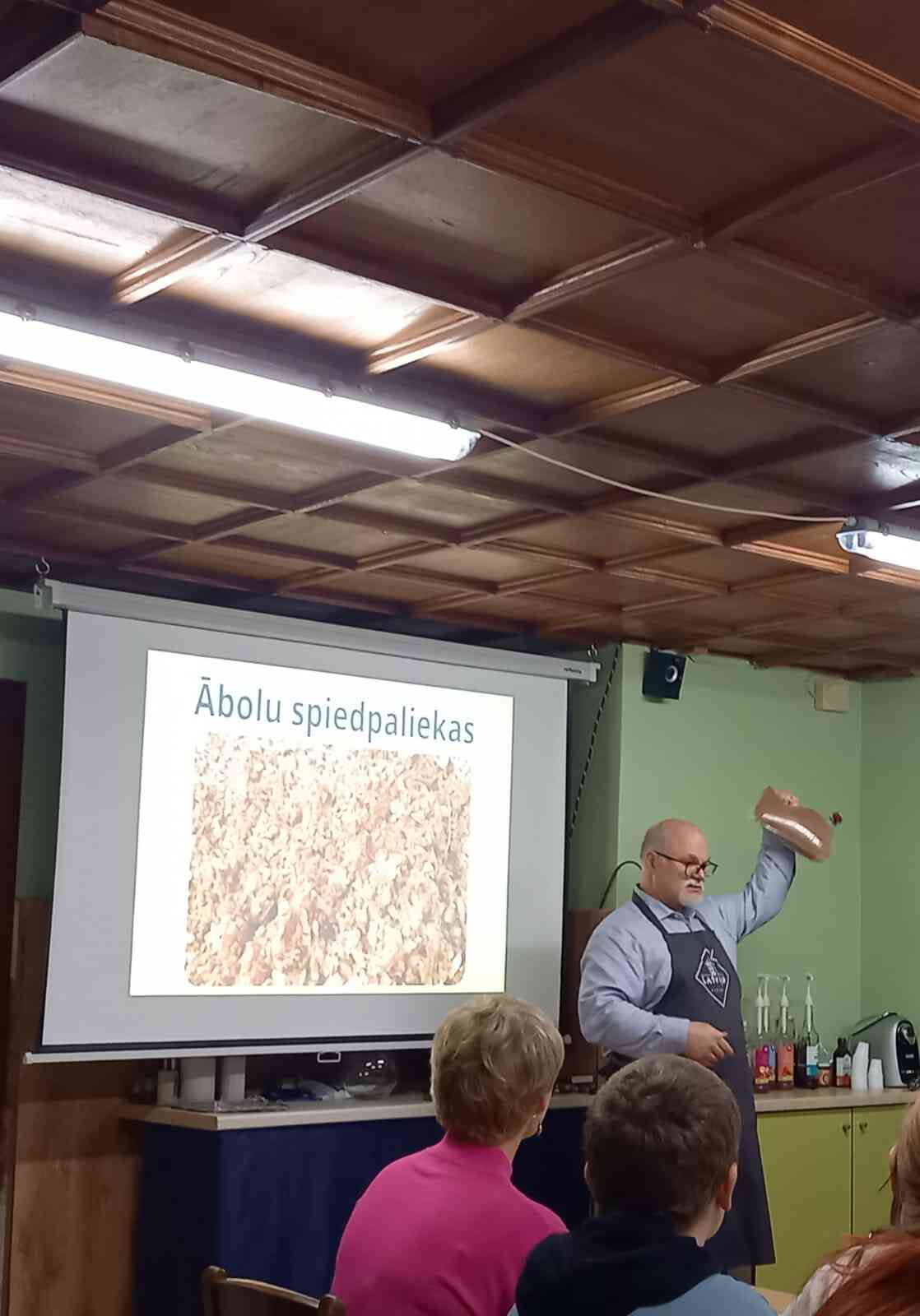 Skolēni darbojās praktiski, no ābolu spiedpalieku masas katrs pagatavoja sev marmelādes konfekti. Noslēgumā atkārtoja un nostiprināja zināšanas par atkritumu šķirošanu, šķirošanas nozīmi un resursu taupīšanu.