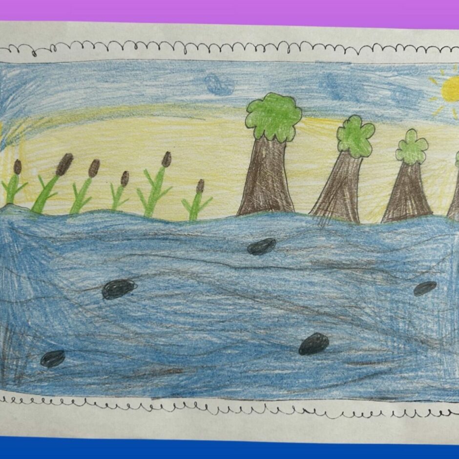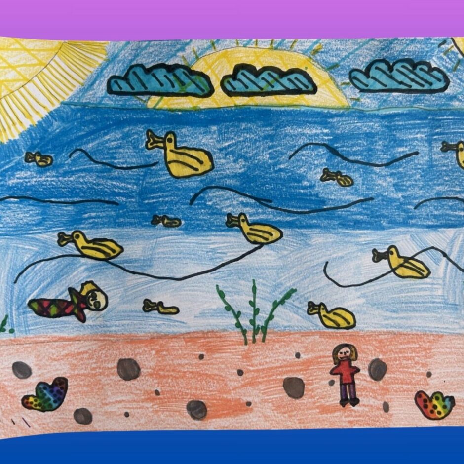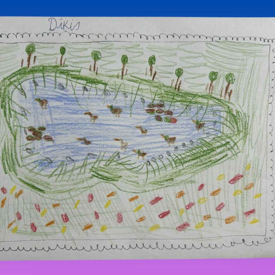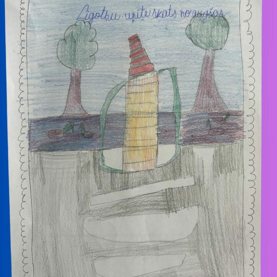 1.-3. klases skolēni pētīja tuvākās apkārtnes ūdenstilpnes, pārrunāja kādas tās izskatās, sprieda par ūdens tīrību un piesārņojumu un uzzīmēja savu ūdens karti.