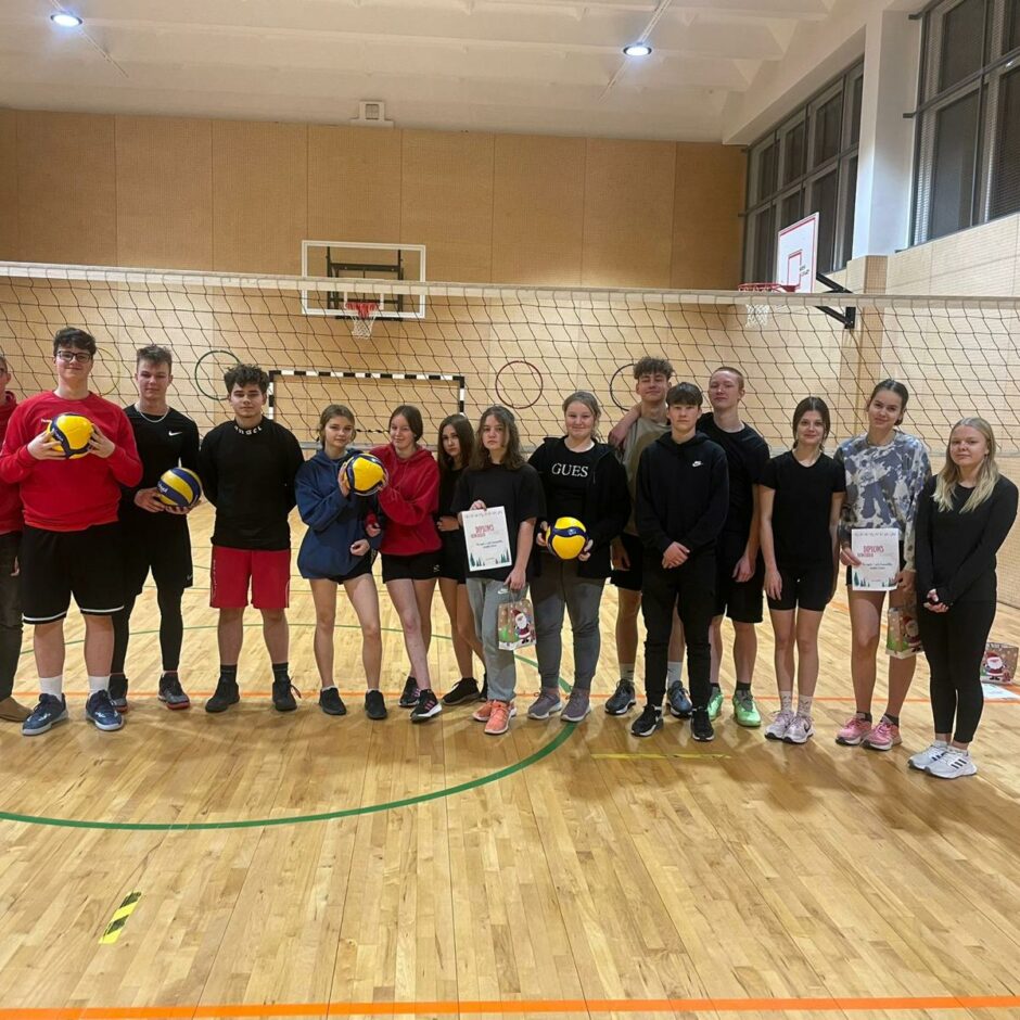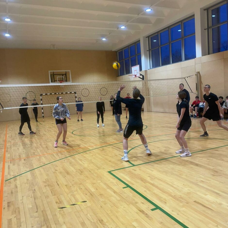 11. decembrī norisinājās Ziemassvētku volejbola turnīrs. Visi, kas vēlējās piedalīties atnāca un izlozēja savas komandas. Kopā piedalījās 3 komandas- “Dūži”, “Stirnas” un komanda “PatriX”. Komandas savā starpā izspēlēja 2 apļus līdz divu setu uzvarai. Abos izspēles apļos nepārspēta palika komanda “ PatriX” (Edvards, Gustavs, Lauris, Patriks, Nikola un Anete), 2. vietu izcīnīja komanda “Dūži” (Kristians, Krista J., Krista G., Ida, Zane un Alekss), taču 3. vietu ieguva “Stirnas” (Megija, Evelīna, Renārs, Deivijs, Laura un Jānis). Komandas ieguva gardas balviņas un diplomus. Paldies par dalību ikvienam sportot gribētājam.